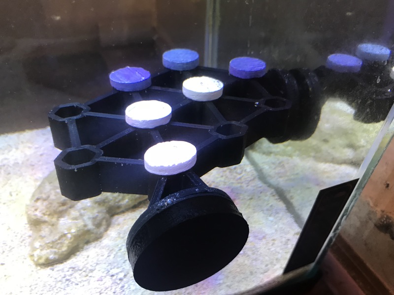These are magnetically mounted frag plug rack for marine aquariums. They were printed in PLA, but I suggest ABS or PETG for the longest life.